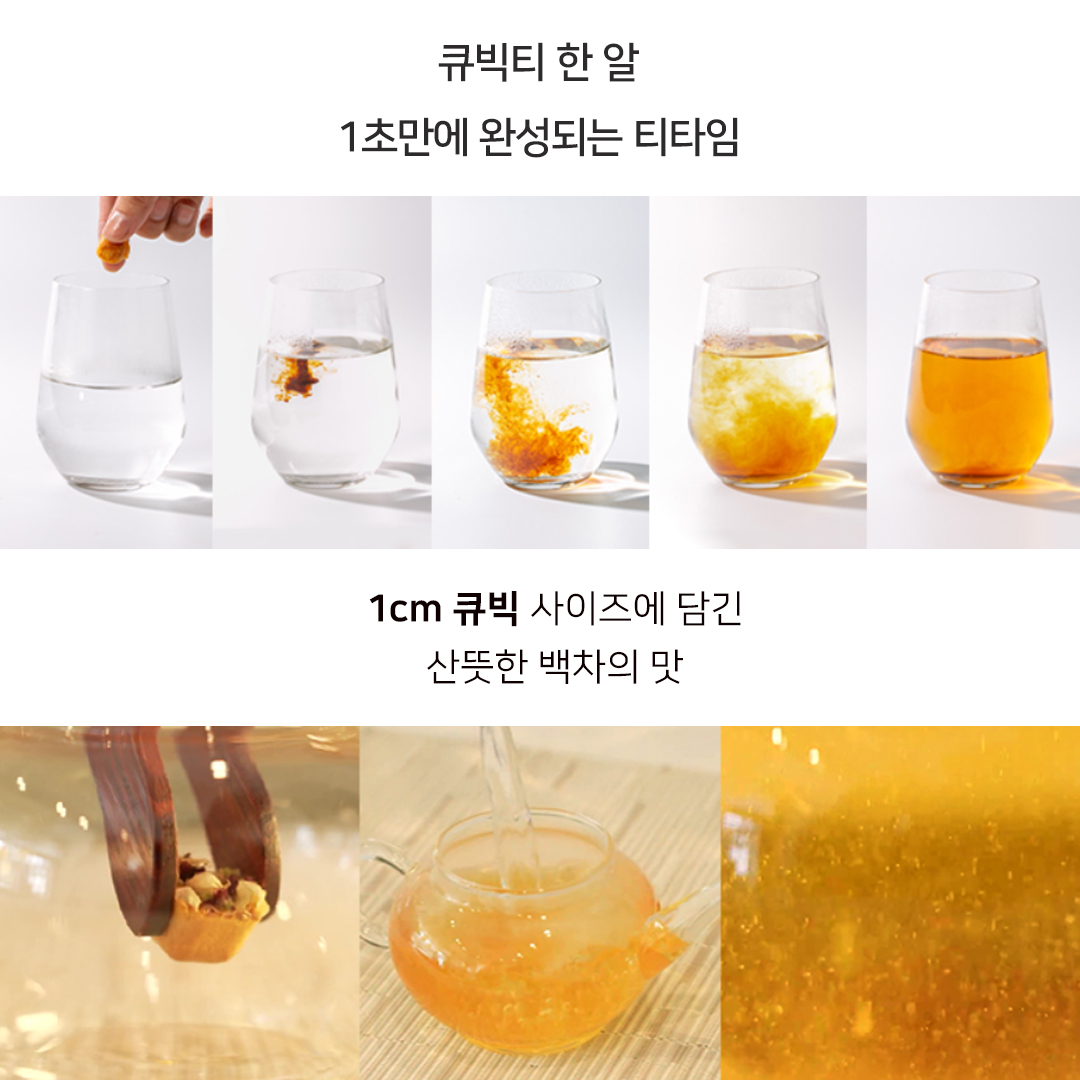 02. 1 분도 채 안되는 빠른 시간내에 물에 잘 녹아, 바쁜 현대인들이 빠르게 즐기기에도 적합한 큐빅티 !